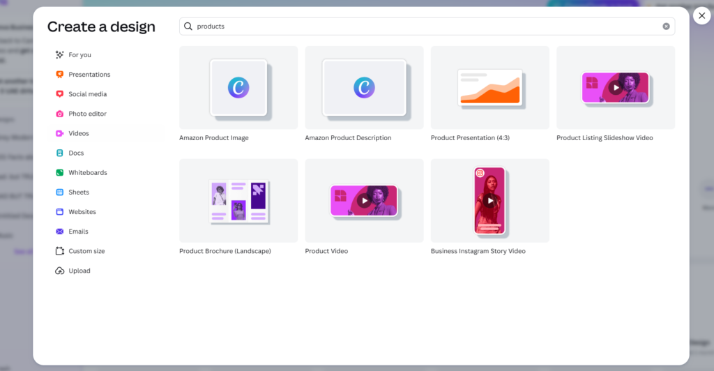 Canva operates on a drag-and-drop canvas model. Everything - text, images, video clips, shapes, icons, charts, AI-generated content - exists as a moveable, resizable element on your canvas. You start either from a blank canvas with custom dimensions or from one of Canva’s 3.6 million+ templates.