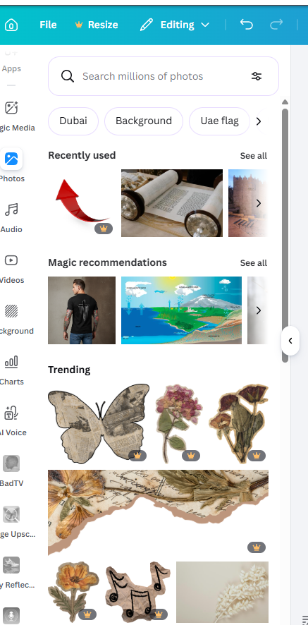 On the Free plan, Canva provides access to over 4.7 million photos, videos, graphics, and audio files. On Pro and above, the library expands to 141 million+ premium stock assets, including photography, video footage, music tracks, and sound effects from professional stock providers. The quality at this tier is excellent for marketing and commercial use.