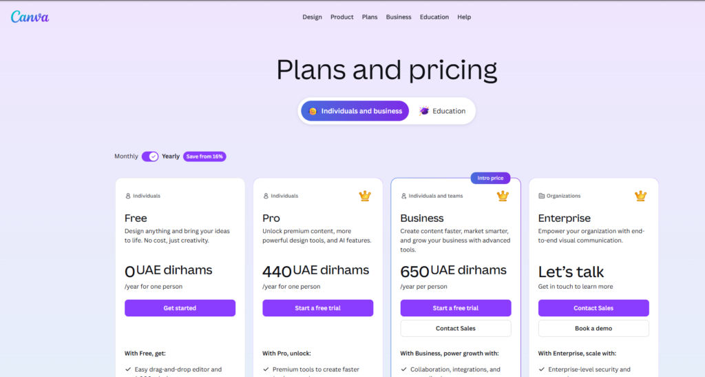 Canva Enterprise is a custom-priced plan for organisations of 100+ seats. It includes everything in Business plus: SSO and SCIM provisioning, 1,000 Brand Kits, 1TB storage, custom integrations, enterprise security controls, IP indemnity on AI-generated content (important for commercial work), and a dedicated success manager. For individual freelancers, Enterprise is not relevant. For freelancers who have grown into agencies, it is worth a conversation with Canva’s sales team.